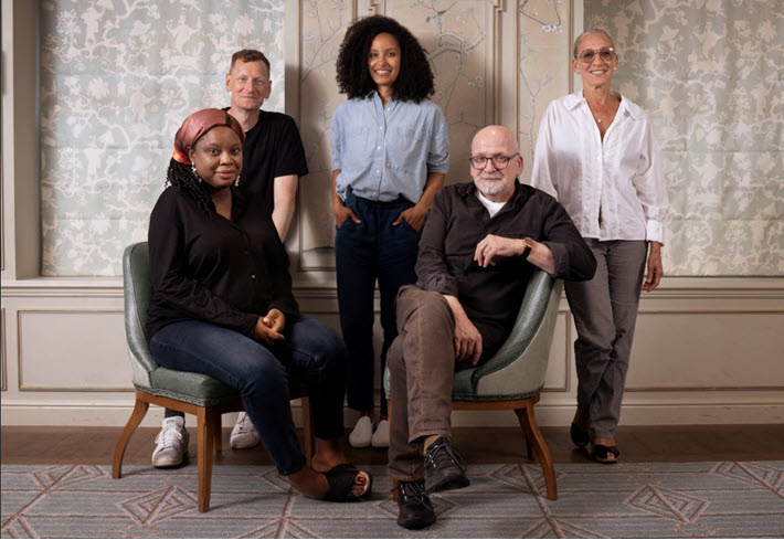 Booker Prize for Fiction 2025 jurors are, from left, Ayọ̀bámi Adébáyọ̀; Chris Power; chair Roddy Doyle; Sarah Jessica Parker; and Kiley Reid. Image: Booker Prize Foundation, Tom Pilston